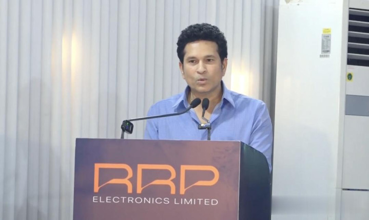 Sachin Tendulkar,被印度人称为「板球的神」;上图为他在RRP电子新工厂开幕式上致辞